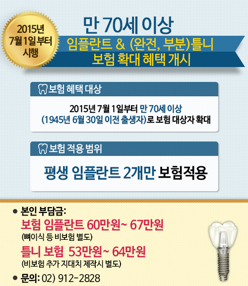 만 70세부터 의료보험 적용을 받으실 수 있습니다.